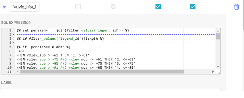 В данном примере ключом метрики является уровень принимаемого сигнала (RX level). значения которого группируются по определённым диапазонам и в дальнейшем используются для расчёта доли уровня сигнала в общем объеме данных.